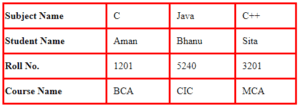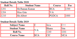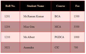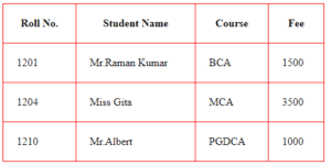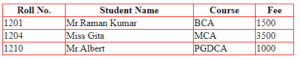 Roll No.Student Name Course Fee