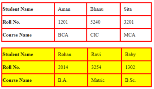 Example : How to set background color in a table.