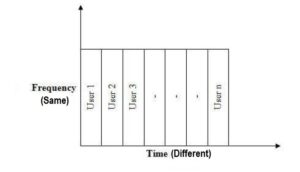 - Here, each user of the channel is allotted a small time interval during which it may transmit a message. Thus the total time available in the channel is divided and each user is allocated a time slot. In this, data from each user is multiplexed into a frame which is transmitted over the channel.