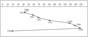 - For example :- The head movement to read data from a disk file in SSTF manner :-