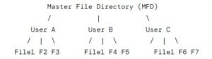 - Multi-Level Indexing: A “master” index block points to second-level index blocks, which in turn point to the data blocks. Uses multiple levels of index blocks to support larger files (e.g., Unix inode structure).